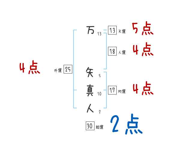 万矢真人さんの画数の鑑定結果