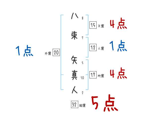 八束矢真人さんの画数の鑑定結果