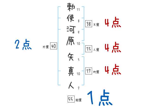 人運![]() | 勅使河原矢真人さんの人運は15画の4つ星!人徳があり出世する。順調に物事を進め円満な人生。 性格や才能などを表す2番目に重要な運勢です。人間関係や協調性、社会的な成功に影響します。主に20歳から50歳ぐらいまでの中年期の運勢を表します。 |