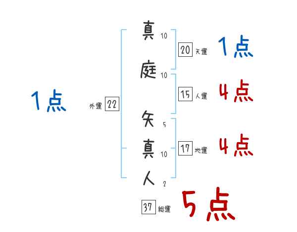 総運![]() | 真庭矢真人さんの総運は37画の5つ星!努力家で順応性に優れる。現実的な考え方ができ忠実に物事をこなす。 あなたの人生を表す1番重要な運勢です。生涯を通じて影響する総合運となり、主に50歳以降の晩年期に影響を及ぼします。 |