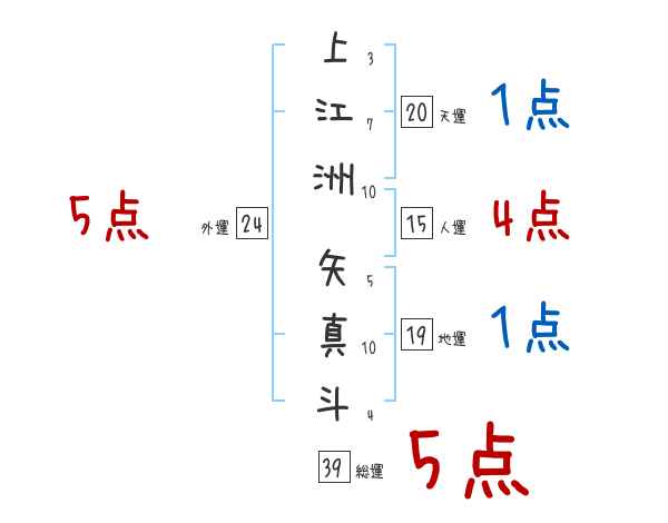 上江洲矢真斗さんの画数の鑑定結果