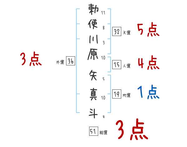 勅使川原矢真斗さんの画数の鑑定結果