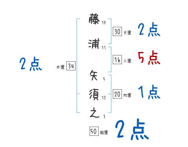 藤浦矢須之さんの画数の鑑定結果