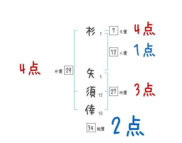 杉矢須倖さんの画数の鑑定結果