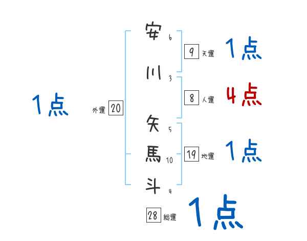 安川矢馬斗さんの画数の鑑定結果