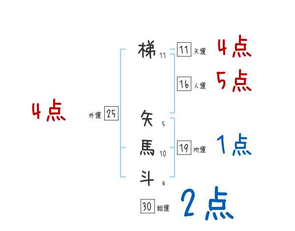 梯矢馬斗さんの画数の鑑定結果
