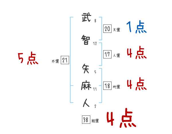 武智矢麻人さんの画数の鑑定結果