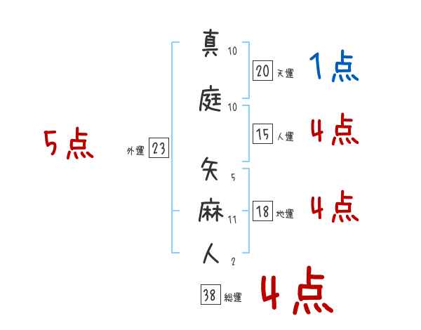 真庭矢麻人さんの画数の鑑定結果