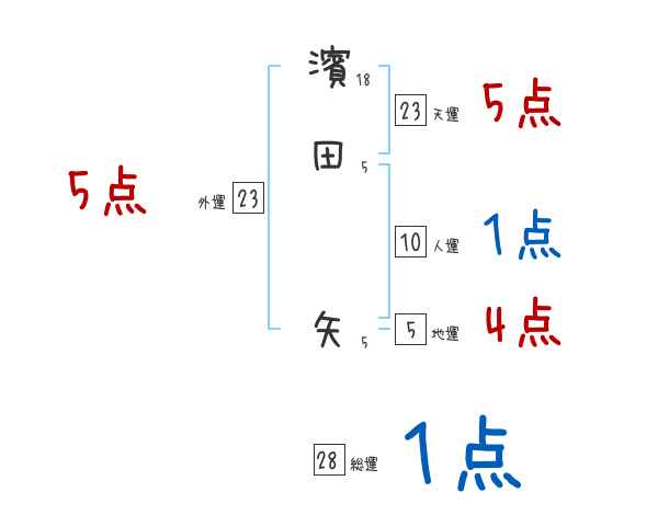 濱田矢さんの画数の鑑定結果