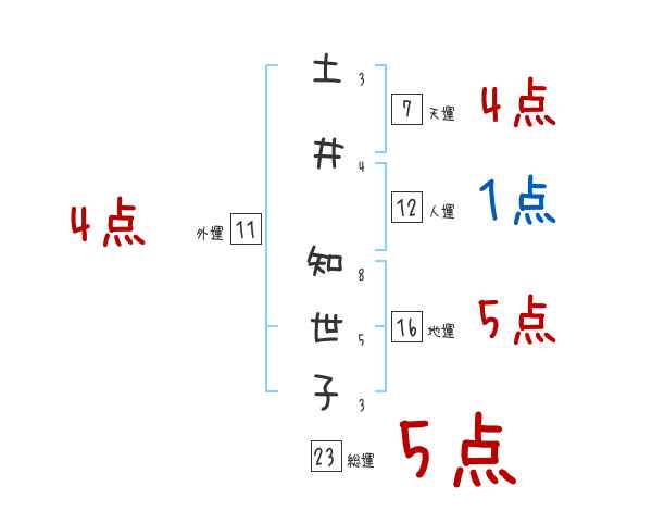 土井知世子さんの画数の鑑定結果