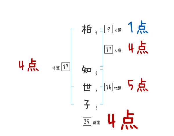 柏知世子さんの画数の鑑定結果