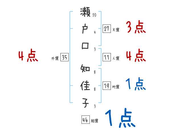 瀬戸口知佳子さんの画数の鑑定結果