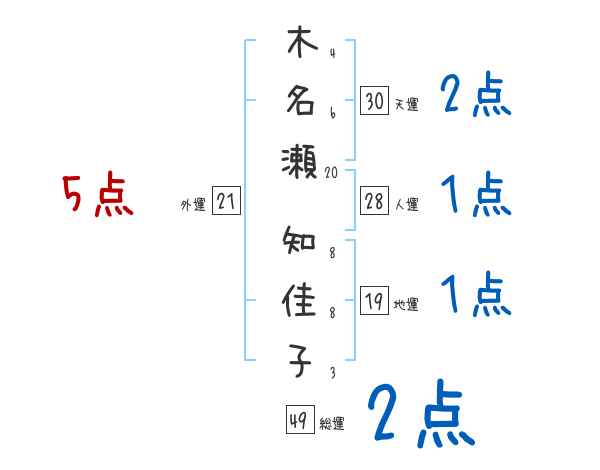 木名瀬知佳子さんの画数の鑑定結果