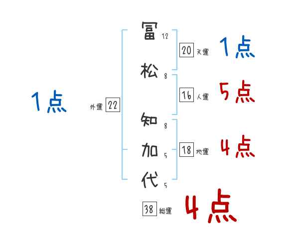 冨松知加代さんの画数の鑑定結果