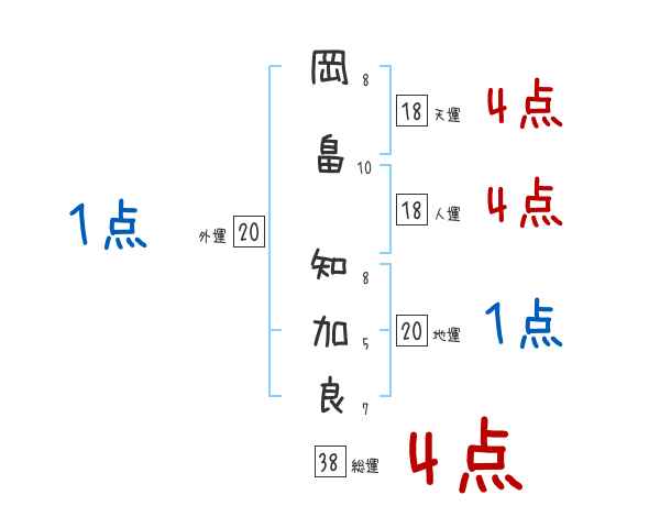 天運![]() | 岡畠知加良さんの天運は18画の4つ星!情熱的で剛気。忍耐力があり信頼される。 家系が持つ宿命的な運勢を表します。祖先から受け継いだ苗字ですので自分の力が及びません。家柄を象徴します。 |