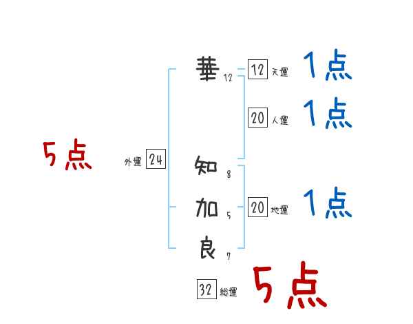 総運![]() | 華知加良さんの総運は32画の5つ星!柔軟性があり成功する。チャンスが多く金運が良い。 あなたの人生を表す1番重要な運勢です。生涯を通じて影響する総合運となり、主に50歳以降の晩年期に影響を及ぼします。 |