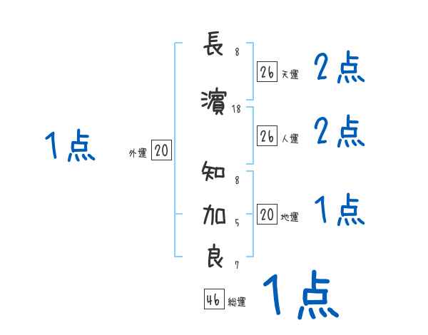 天運![]() | 長濵知加良さんの天運は26画の2つ星!波瀾万丈かも。信頼できる人を大事にしましょう。 家系が持つ宿命的な運勢を表します。祖先から受け継いだ苗字ですので自分の力が及びません。家柄を象徴します。 |