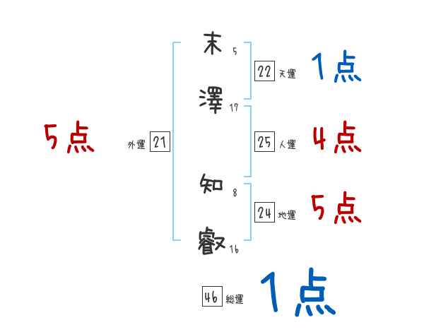 末澤知叡さんの画数の鑑定結果