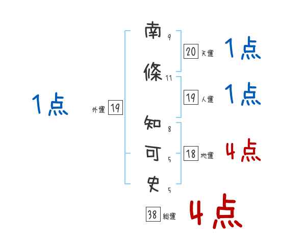 外運![]() | 南條知可史さんの外運は19画の1つ星!優れた才能を持ちますが、協調性が足りないことも。周りの人と協力する事を意識しましょう。 生活面を象徴する運勢です。外部から受ける影響力を表し、結婚運、家庭運や職場、環境への順応性を表します。 |