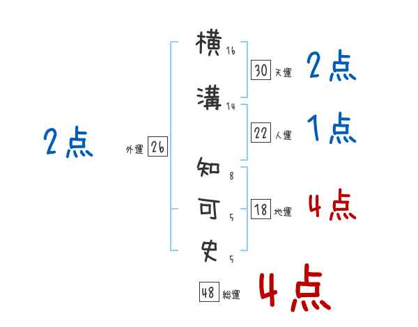 外運![]() | 横溝知可史さんの外運は26画の2つ星!波瀾万丈かも。信頼できる人を大事にしましょう。 生活面を象徴する運勢です。外部から受ける影響力を表し、結婚運、家庭運や職場、環境への順応性を表します。 |