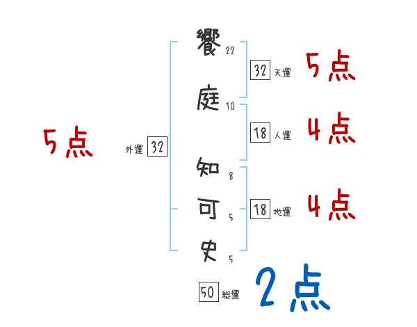 外運![]() | 饗庭知可史さんの外運は32画の5つ星!柔軟性があり成功する。チャンスが多く金運が良い。 生活面を象徴する運勢です。外部から受ける影響力を表し、結婚運、家庭運や職場、環境への順応性を表します。 |