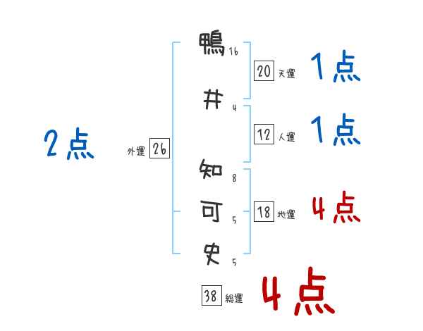 鴨井知可史さんの画数の鑑定結果