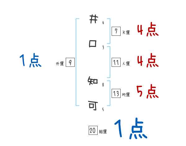 外運![]() | 井口知可さんの外運は9画の1つ星!消極的で才能を発揮することが苦手なことも。周りの意見に耳を傾けましょう。 生活面を象徴する運勢です。外部から受ける影響力を表し、結婚運、家庭運や職場、環境への順応性を表します。 |