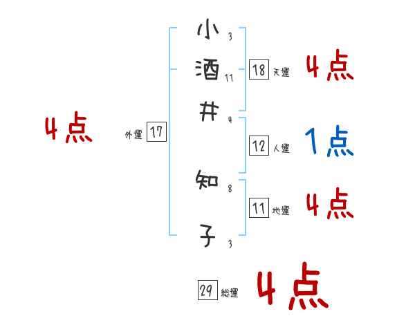 小酒井知子さんの画数の鑑定結果