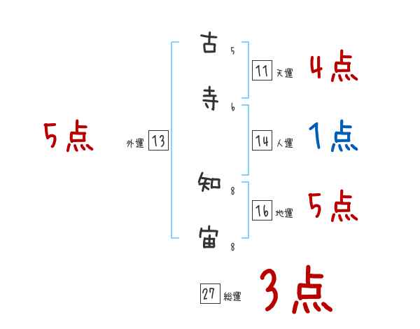 古寺知宙さんの画数の鑑定結果