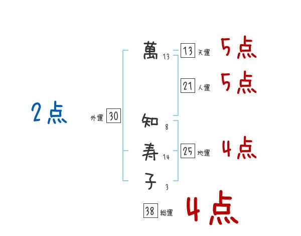 萬知寿子さんの画数の鑑定結果