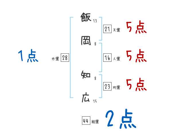 飯岡知広さんの画数の鑑定結果