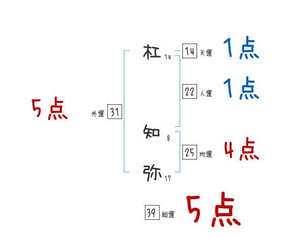 杠知弥さんの画数の鑑定結果