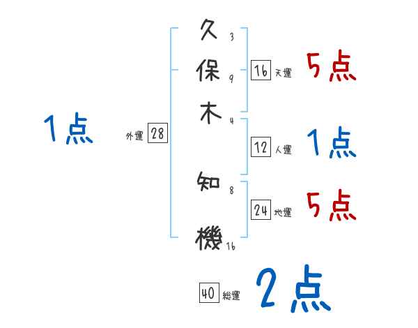 天運![]() | 久保木知機さんの天運は16画の5つ星!人望が厚く大きく発展する。逆転成功が見える。 家系が持つ宿命的な運勢を表します。祖先から受け継いだ苗字ですので自分の力が及びません。家柄を象徴します。 |