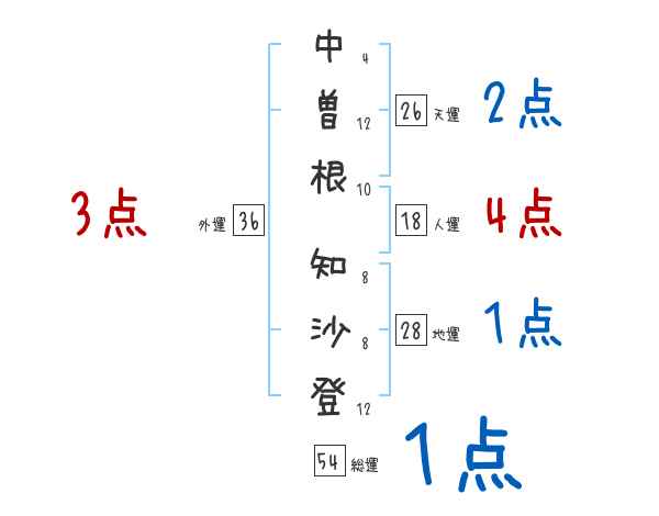 外運![]() | 中曽根知沙登さんの外運は36画の3つ星!先見性が豊かです。多少神経質で苦労することも。 生活面を象徴する運勢です。外部から受ける影響力を表し、結婚運、家庭運や職場、環境への順応性を表します。 |