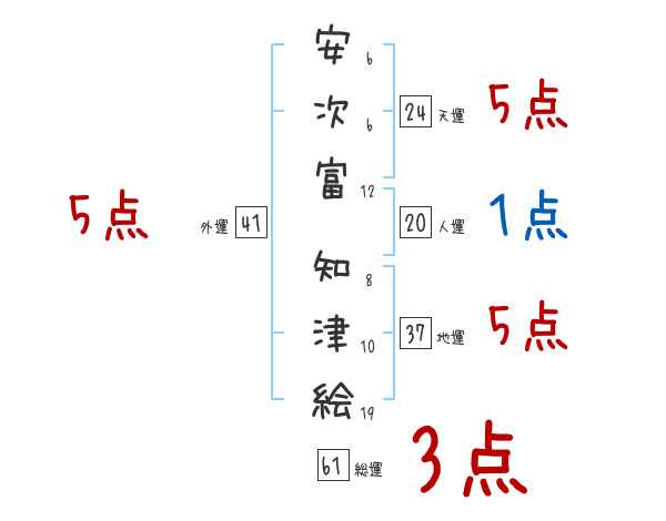安次富知津絵さんの画数の鑑定結果