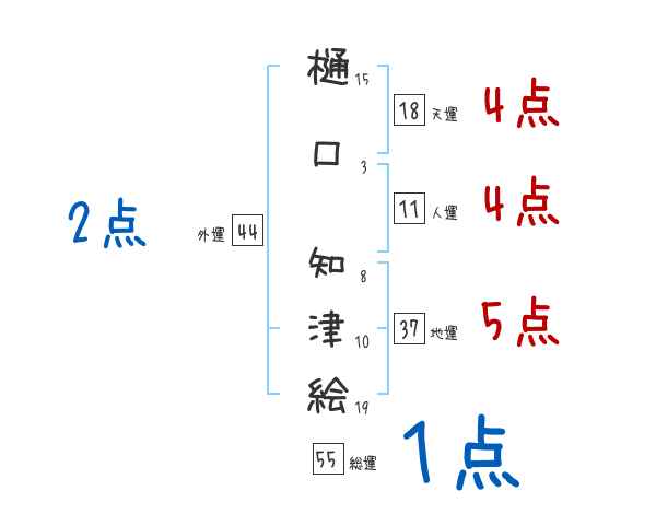 天運![]() | 樋口知津絵さんの天運は18画の4つ星!情熱的で剛気。忍耐力があり信頼される。 家系が持つ宿命的な運勢を表します。祖先から受け継いだ苗字ですので自分の力が及びません。家柄を象徴します。 |