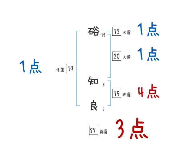 外運![]() | 硲知良さんの外運は19画の1つ星!優れた才能を持ちますが、協調性が足りないことも。周りの人と協力する事を意識しましょう。 生活面を象徴する運勢です。外部から受ける影響力を表し、結婚運、家庭運や職場、環境への順応性を表します。 |