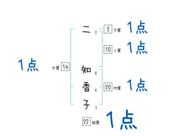 天運![]() | 二知香子さんの天運は2画の1つ星!優しいですが積極性や意思の強さに欠ける傾向があります。家庭環境の乱れに注意しましょう。 家系が持つ宿命的な運勢を表します。祖先から受け継いだ苗字ですので自分の力が及びません。家柄を象徴します。 |