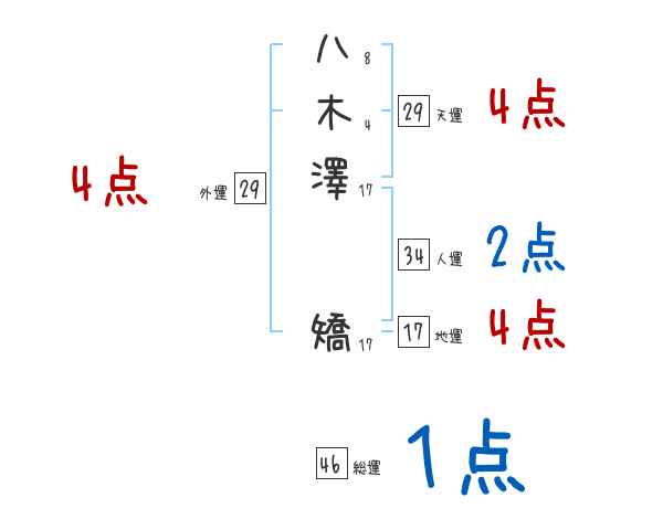 八木澤矯さんの画数の鑑定結果
