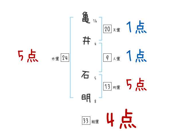亀井石明さんの画数の鑑定結果