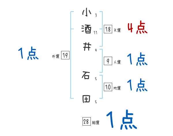 小酒井石田さんの画数の鑑定結果