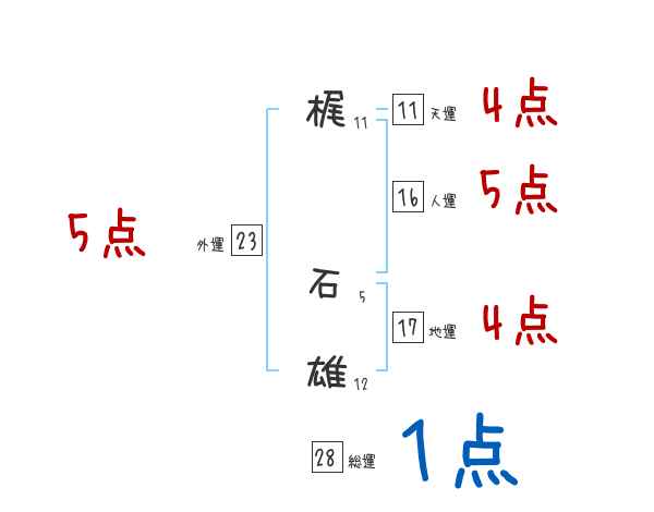 梶石雄さんの画数の鑑定結果