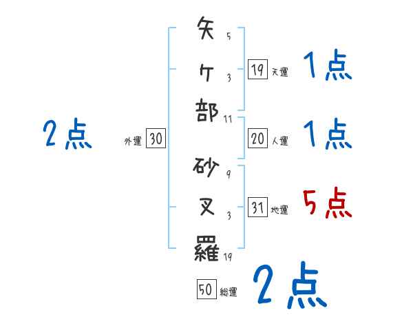 矢ヶ部砂叉羅さんの画数の鑑定結果