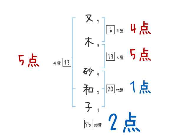 総運![]() | 又木砂和子さんの総運は26画の2つ星!波瀾万丈かも。信頼できる人を大事にしましょう。 あなたの人生を表す1番重要な運勢です。生涯を通じて影響する総合運となり、主に50歳以降の晩年期に影響を及ぼします。 |