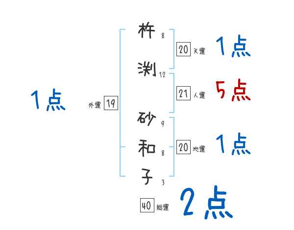 人運![]() | 杵渕砂和子さんの人運は21画の5つ星!統率力がある。独立し成功する。名誉を手に入れる。 性格や才能などを表す2番目に重要な運勢です。人間関係や協調性、社会的な成功に影響します。主に20歳から50歳ぐらいまでの中年期の運勢を表します。 |