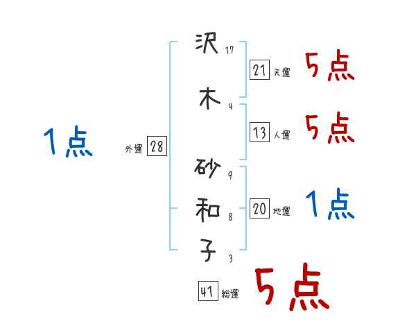 沢木砂和子さんの画数の鑑定結果
