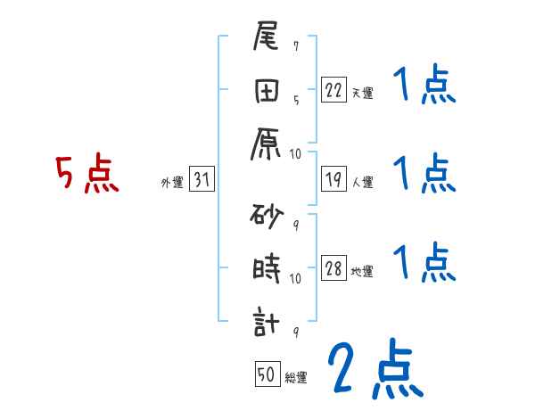 尾田原砂時計さんの画数の鑑定結果