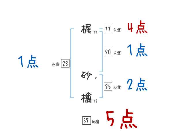 梶砂檎さんの画数の鑑定結果
