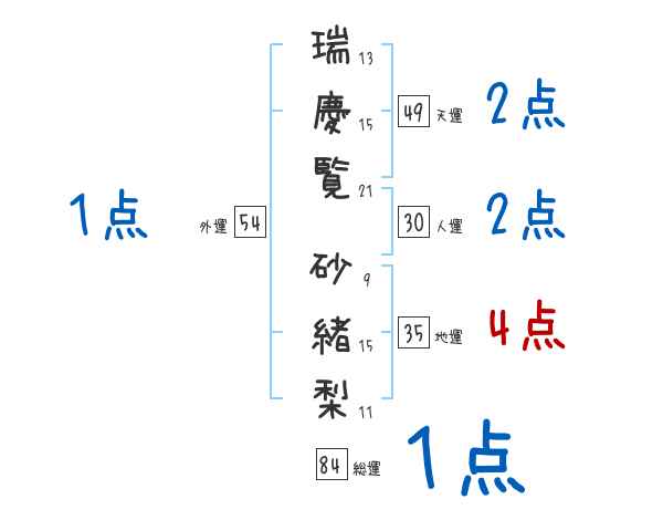 瑞慶覧砂緒梨さんの画数の鑑定結果
