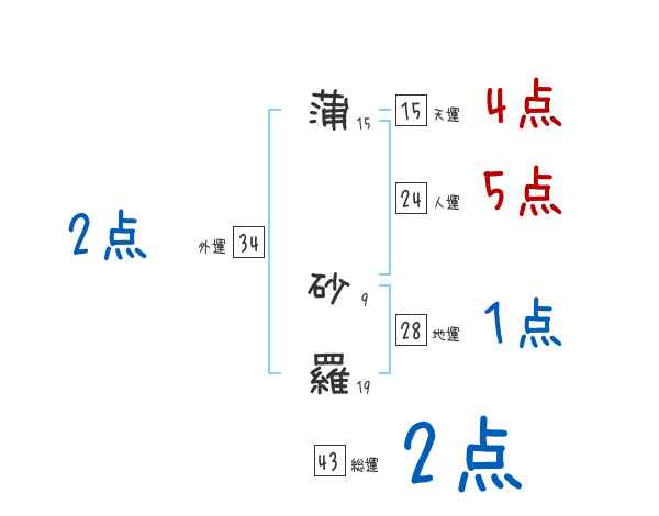蒲砂羅さんの画数の鑑定結果
